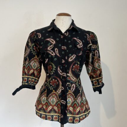 Camisa Vintage com Bordados na Gola – Tam M/G