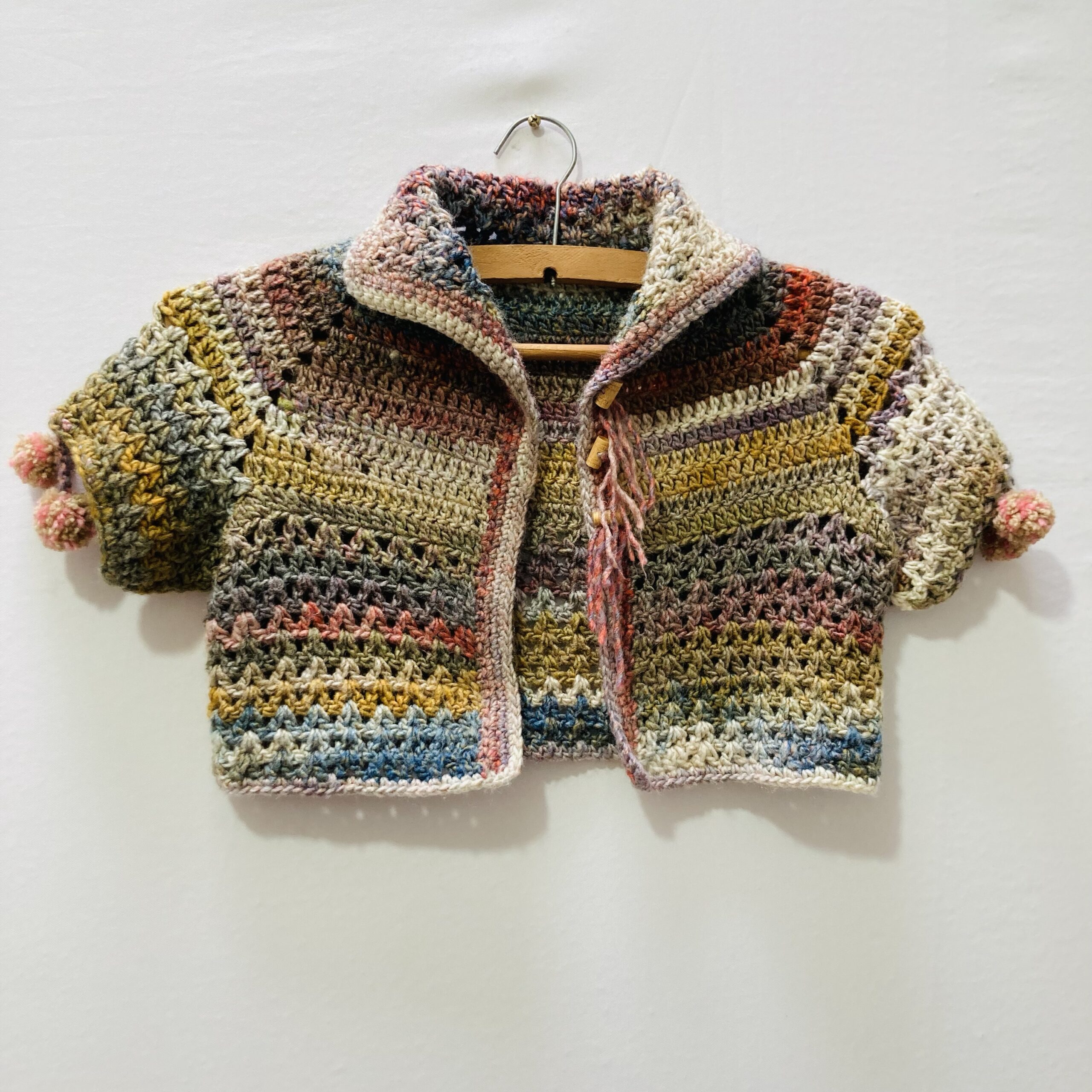 Blusa cropped em crochê, pontos vazados, várias cores.