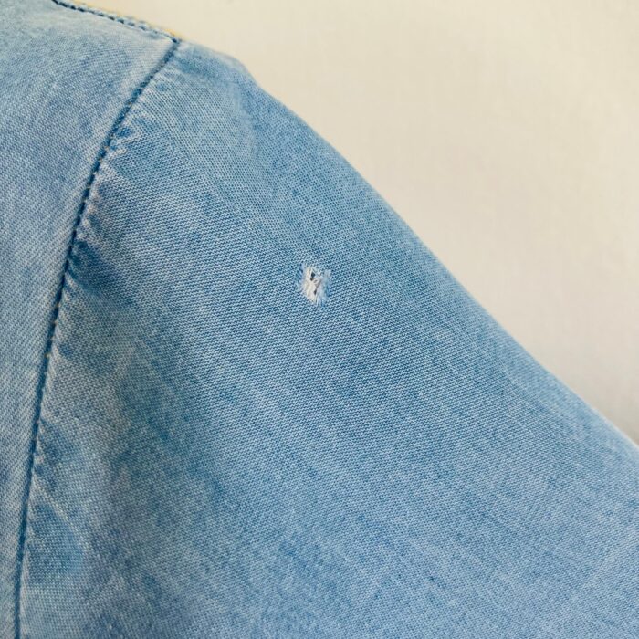 Avarias: um pequeno furo na manga esquerda como mostra a última foto