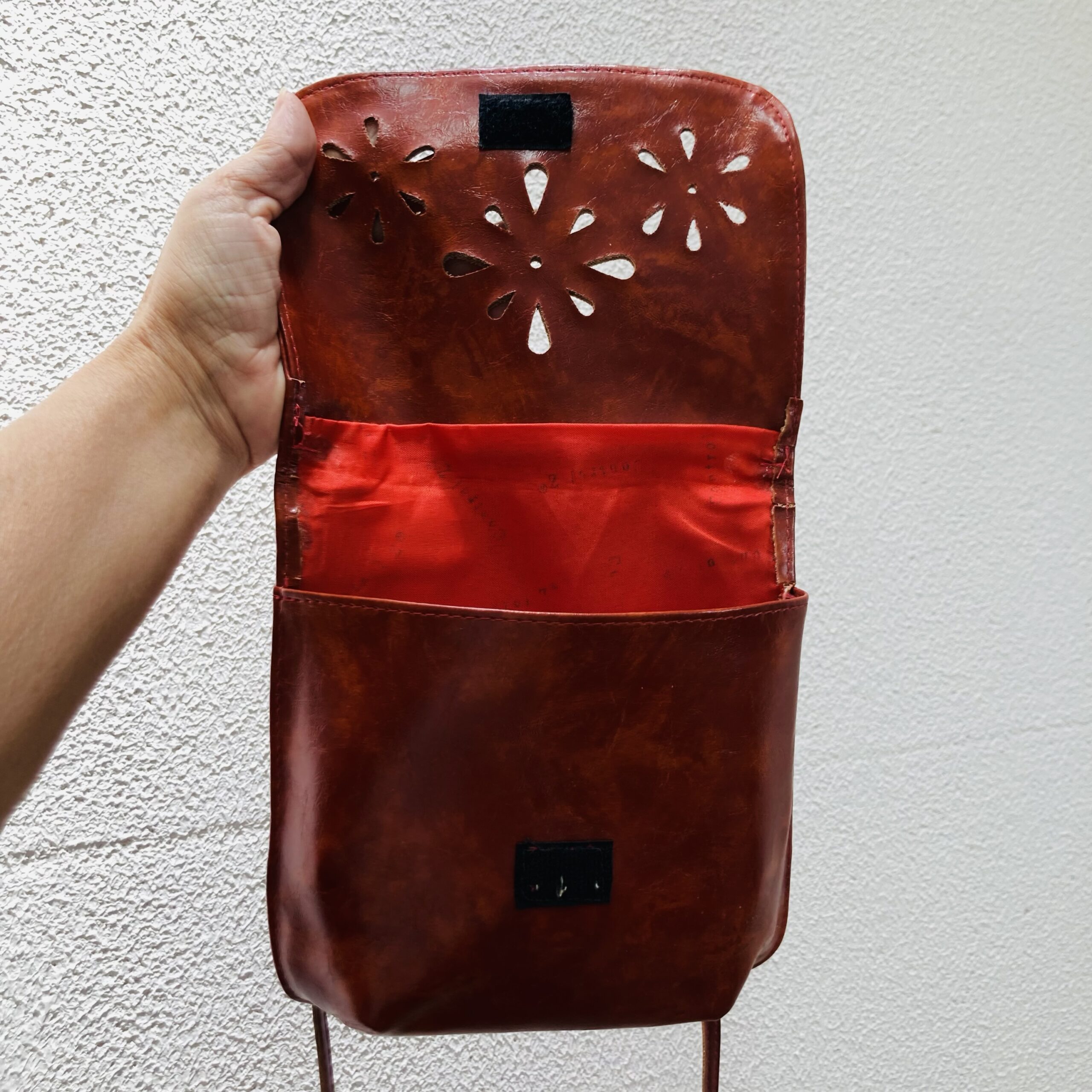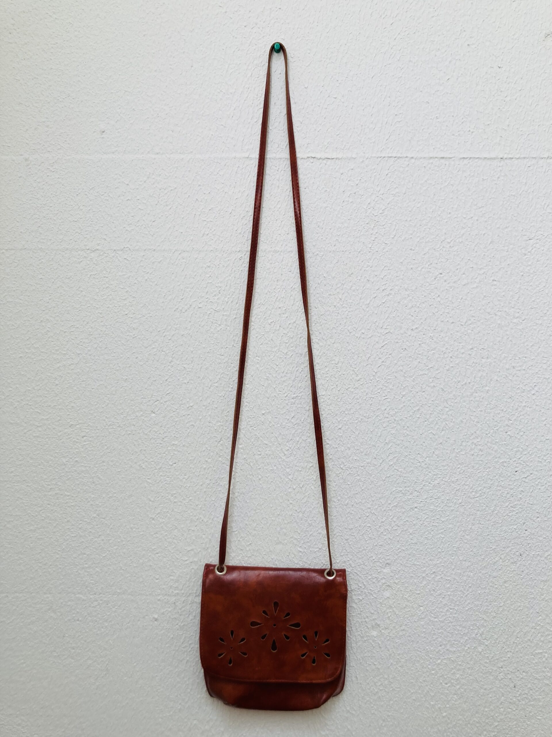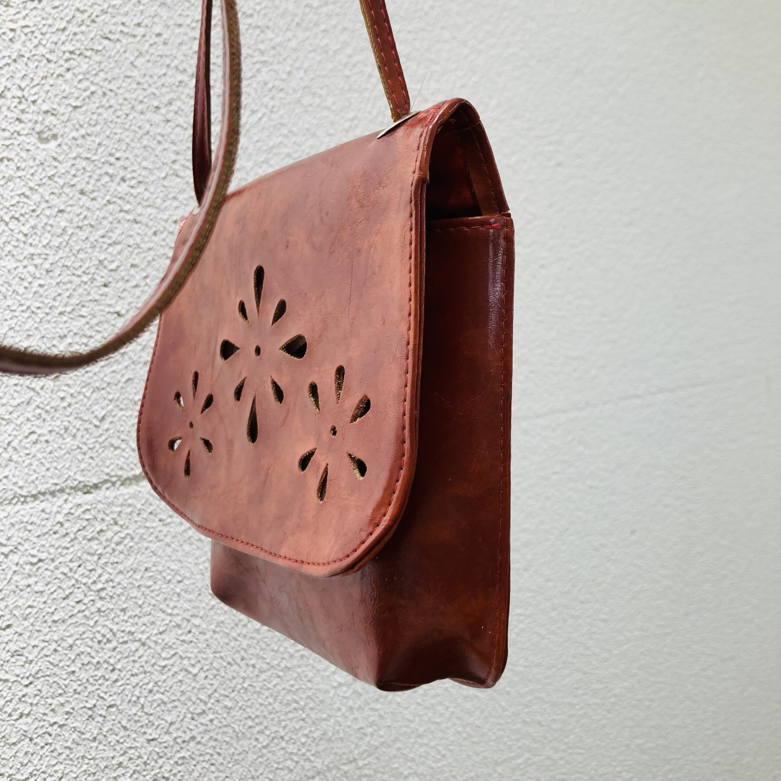 Bolsinha tiracolo em couro sintético.