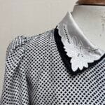 Camisa Vintage com bordados na gola, tecido acetinado, estampa xadrez em preto e branco. Com ombreiras e fechamento com botões na parte da frente. Veste M/G (modelagem ampla)