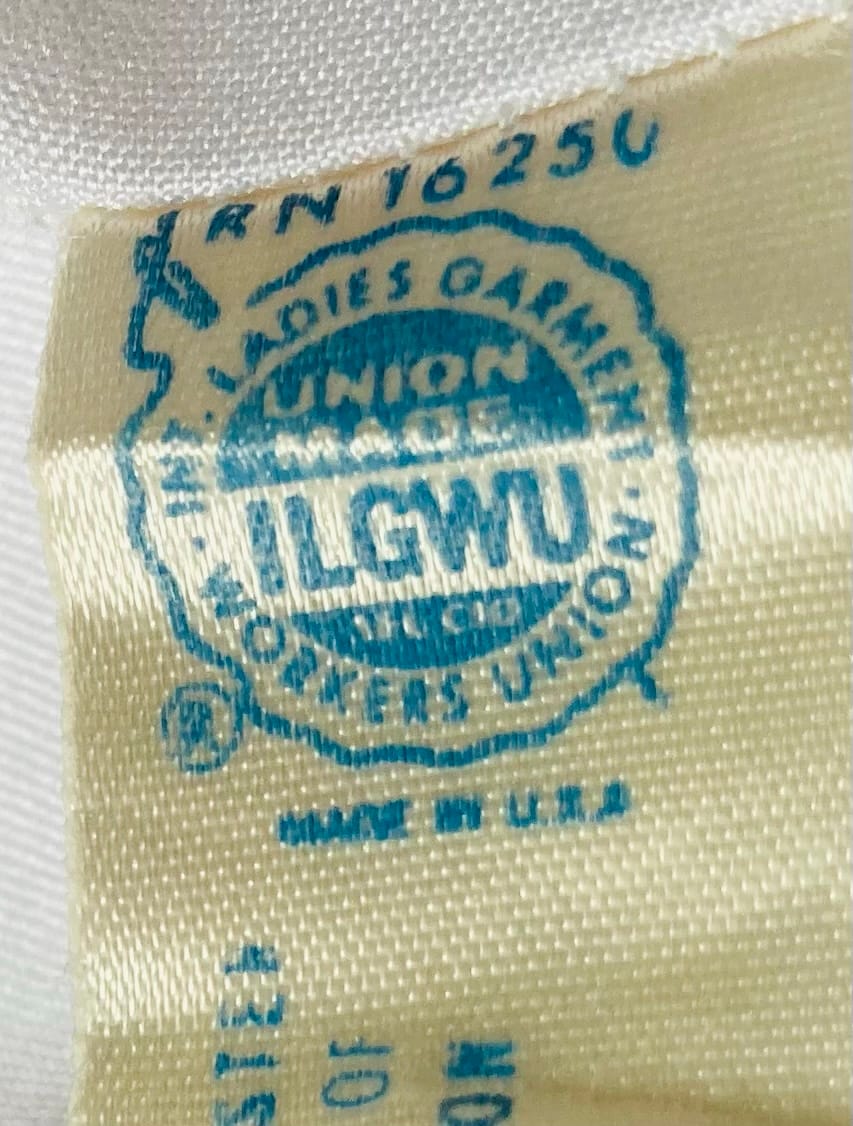 A etiqueta mostra ILGWU é a sigla para International Ladies’ Garment Workers’ Union (União Internacional dos Trabalhadores da Indústria de Vestuário Feminino). Foi um sindicato nos Estados Unidos, fundado em 1900, que representava trabalhadores da indústria de vestuário feminino.