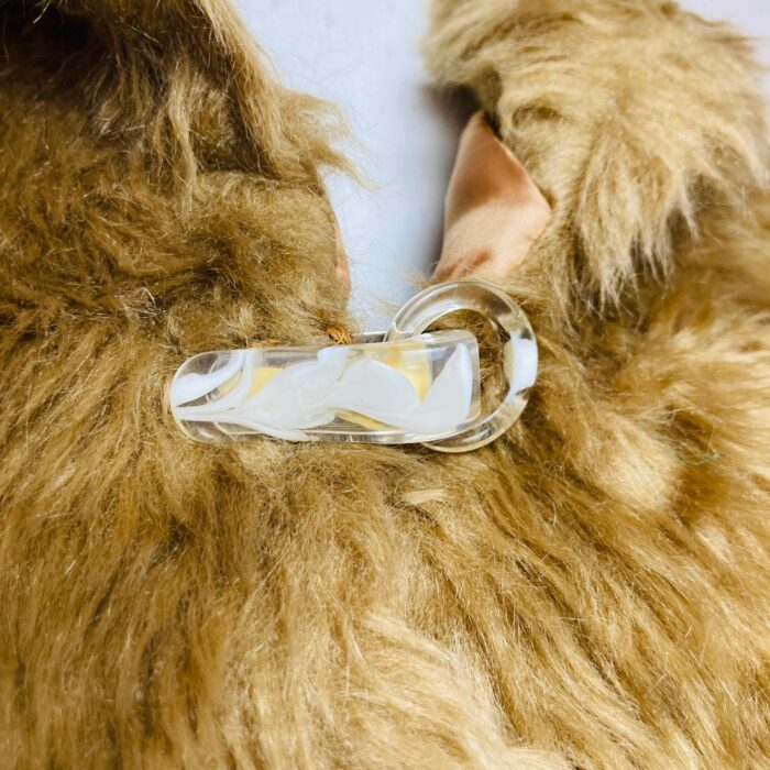 Capa luxuosa com forro acetinado, tecido em poliéster e acrílico.