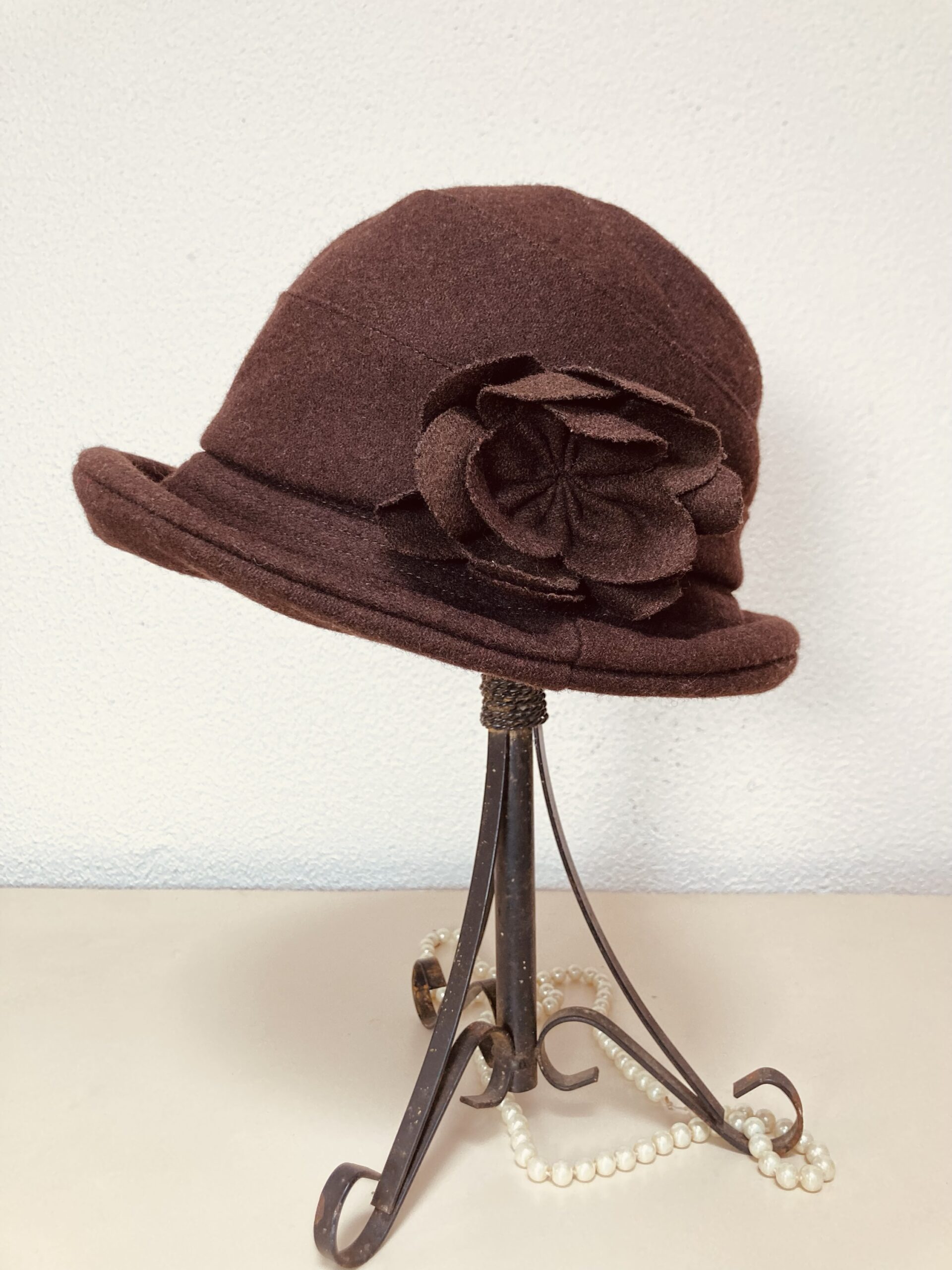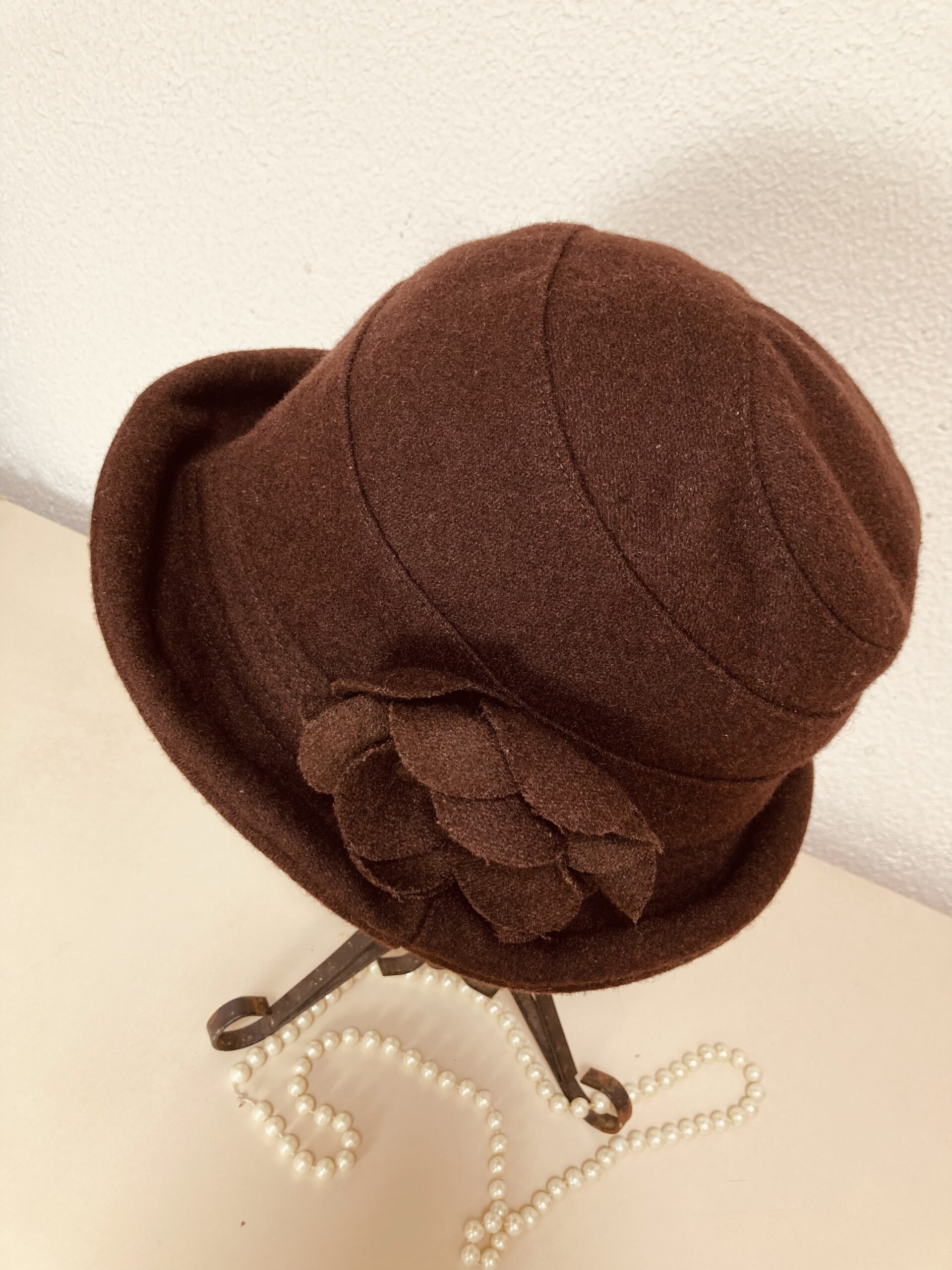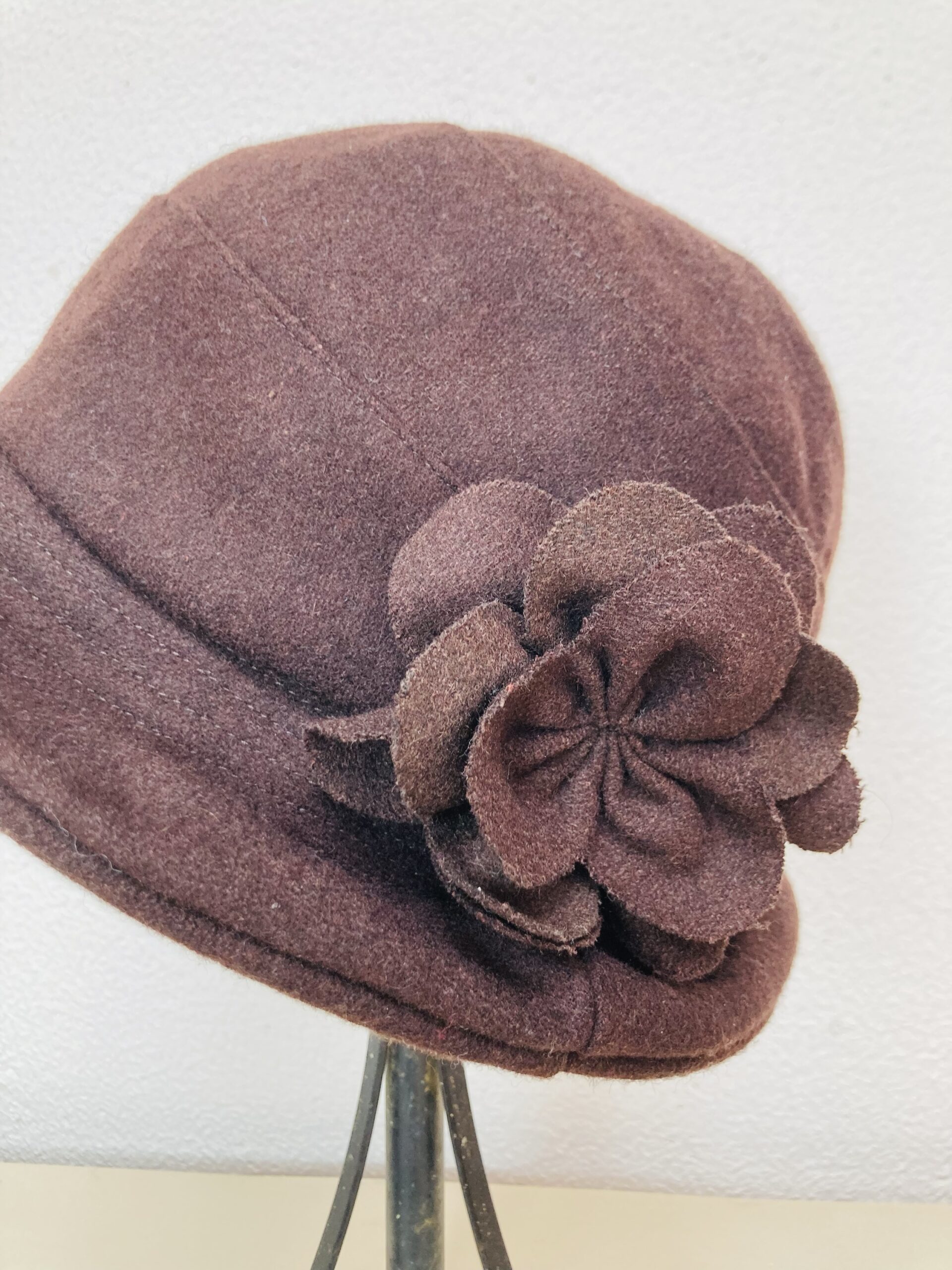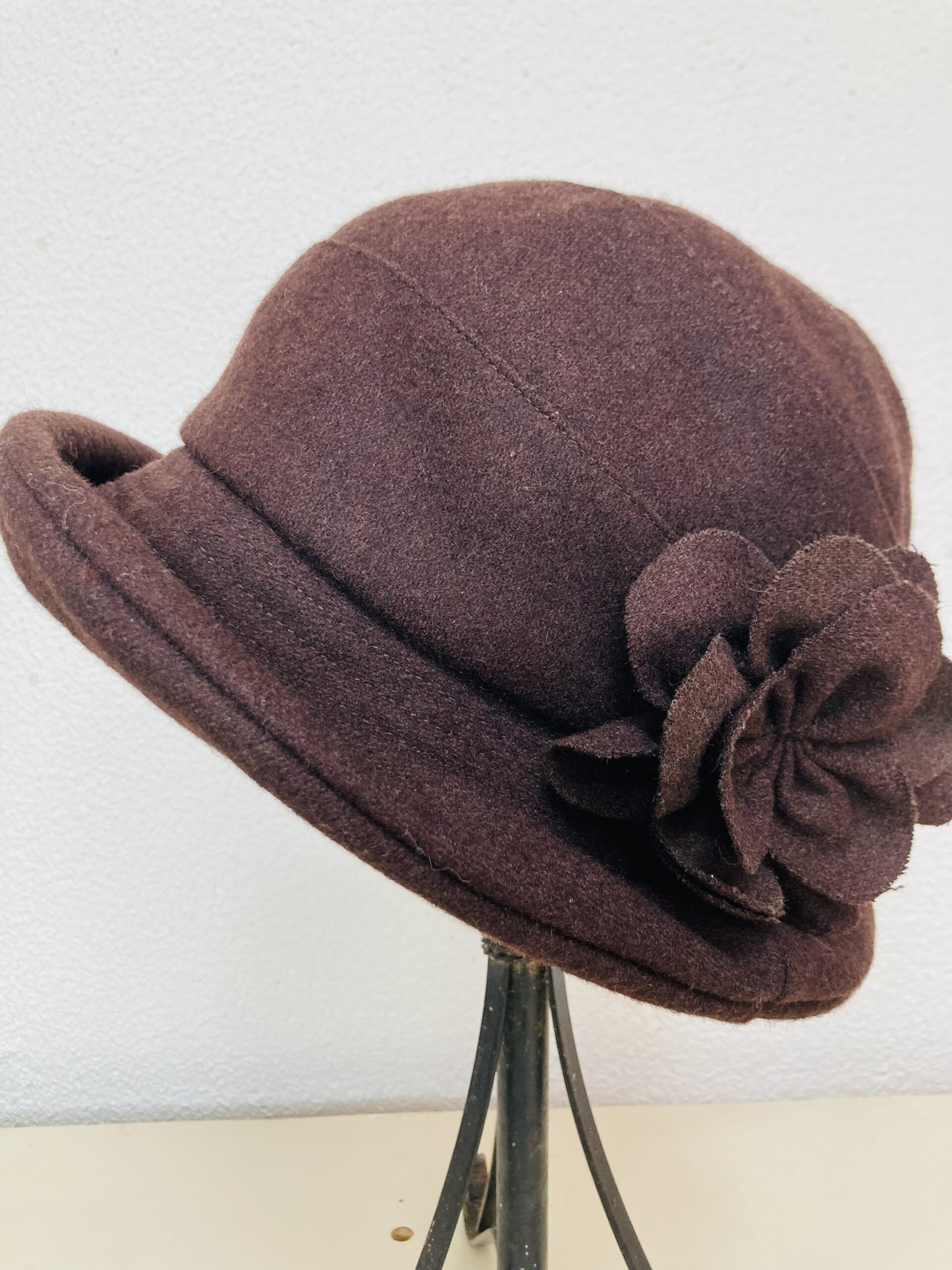 Lindo chapéu vintage, possível década 50/60, em lã batida na cor marrom.