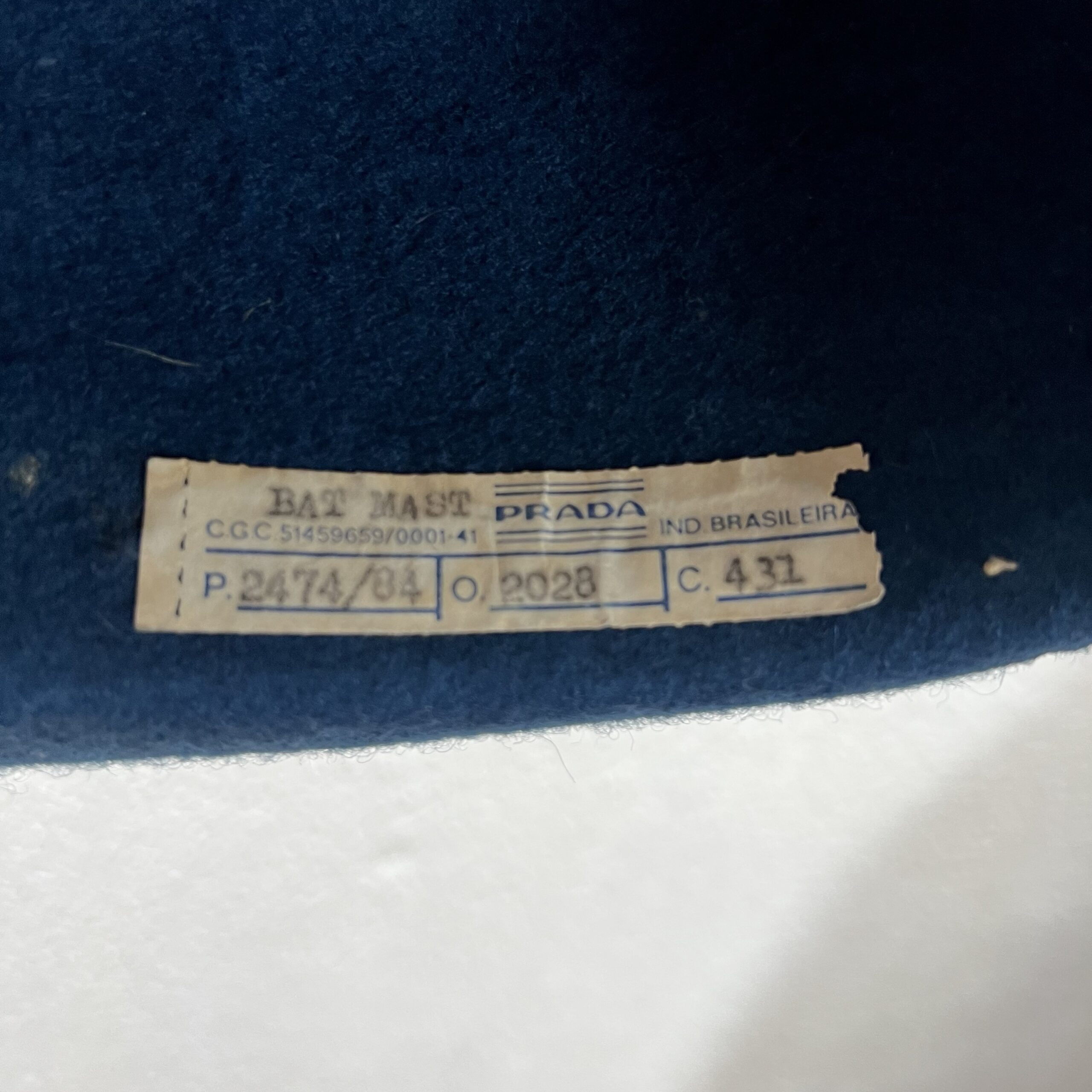 Chapéu Vintage Prada com CGC. Acabamento em veludo.