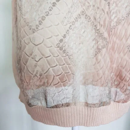 Conjunto em tafetá em tons de verde, bordado com pedrinhas na frente da blusa, anos 80