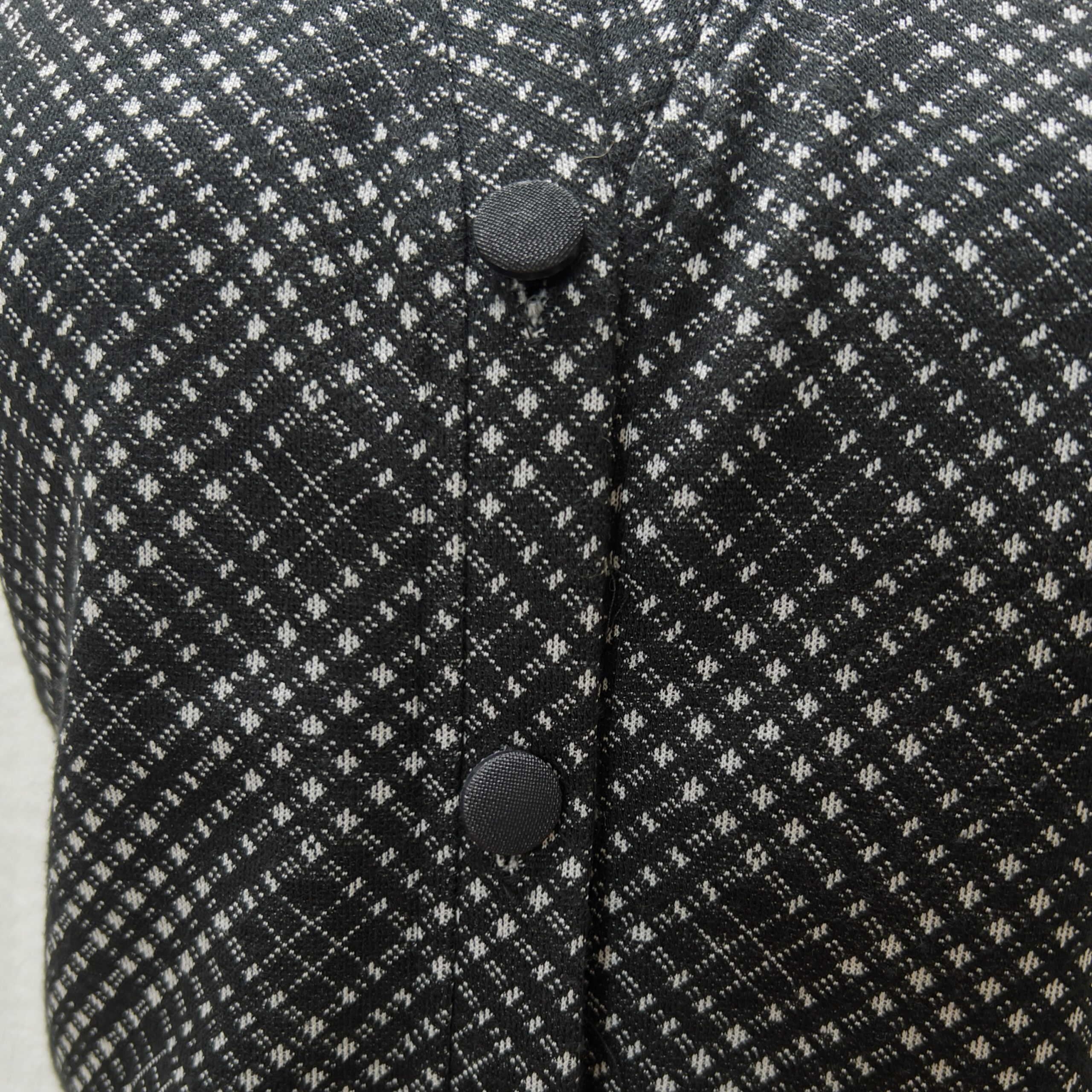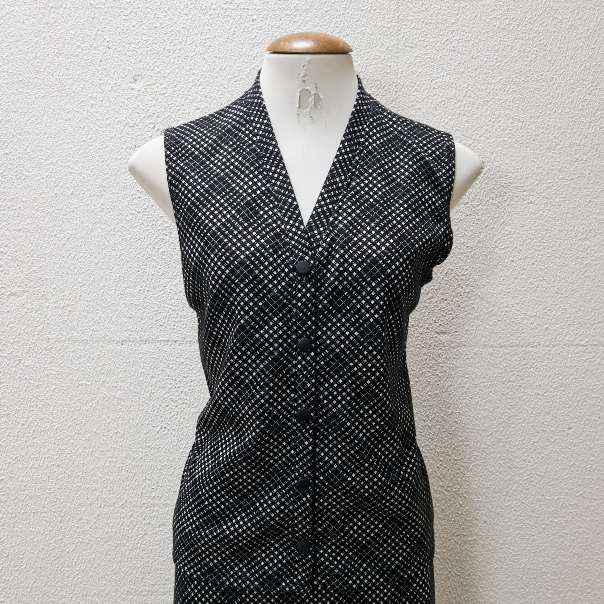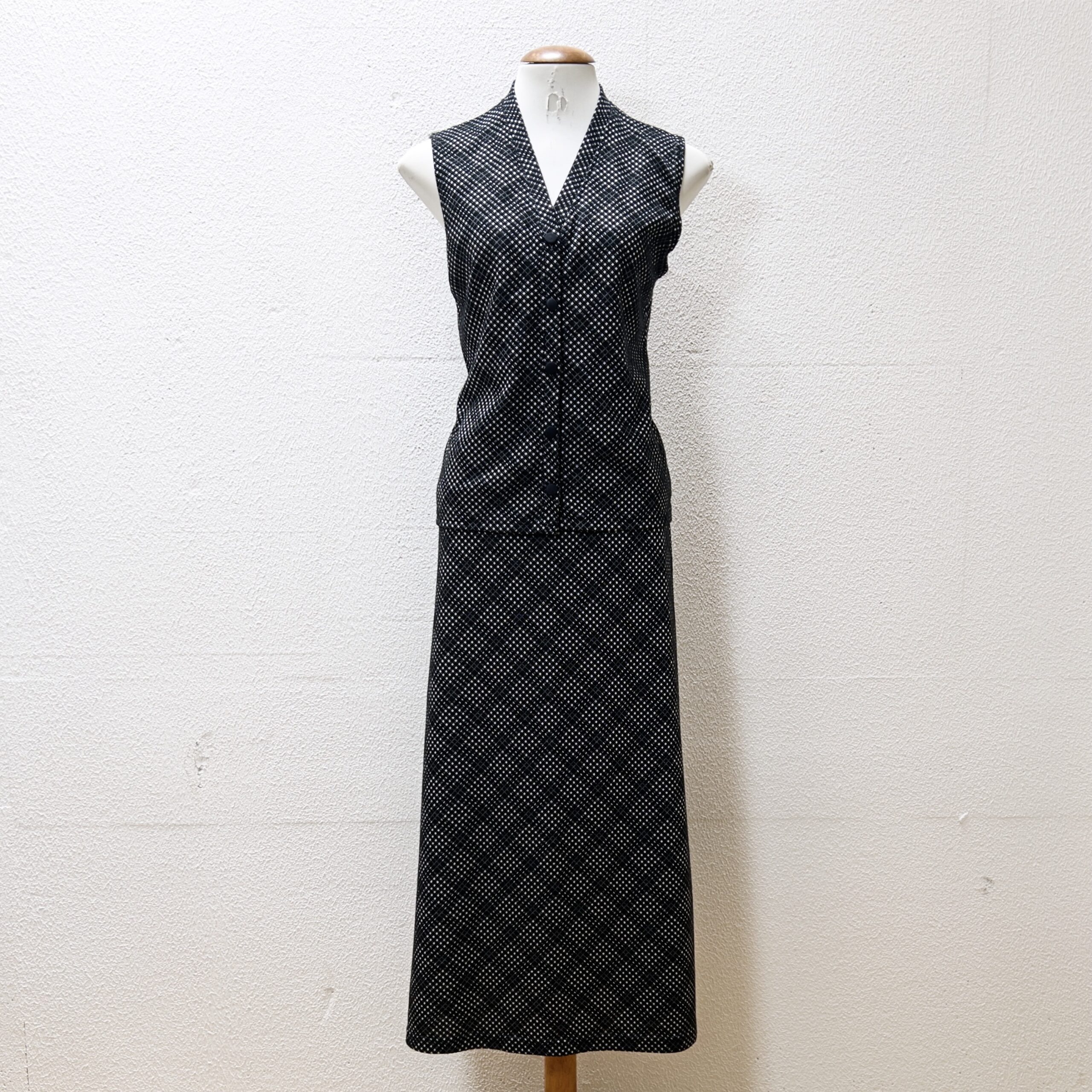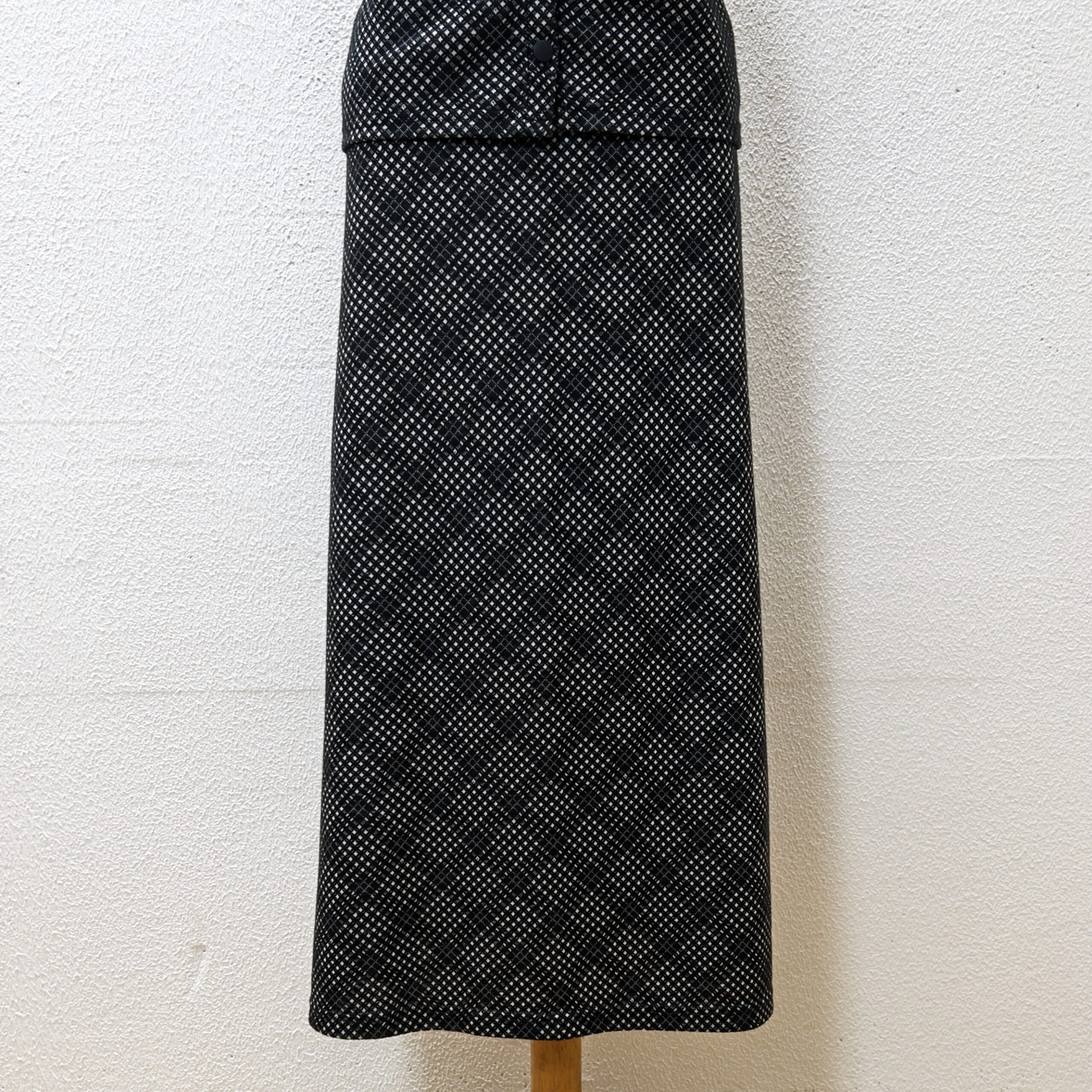 Conjunto xadrez composto por blusa sem mangas e saia longa, Tecido em poliéster e elastano, levemente aveludado. Veste M.