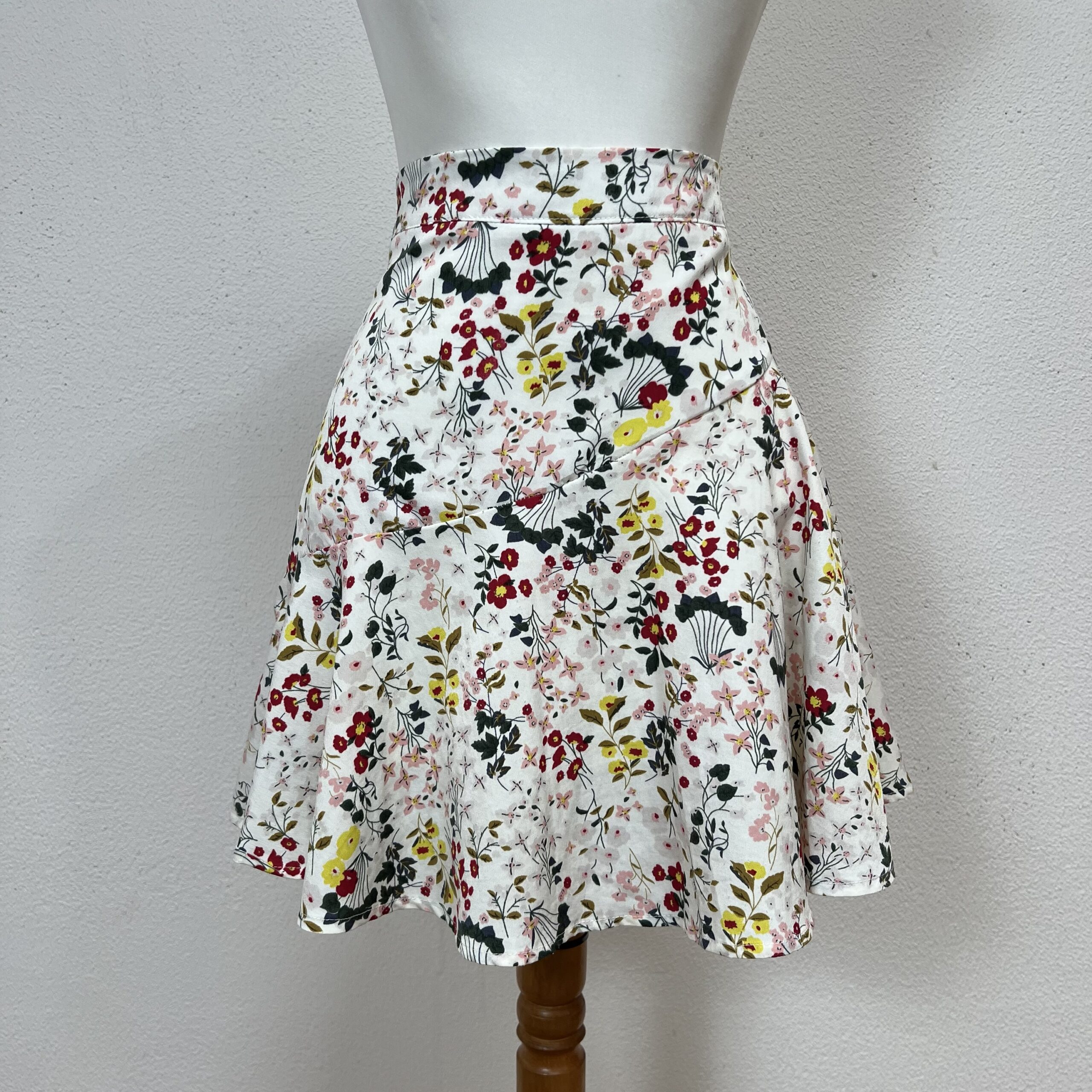 Saia curta em tecido leve, com estampa floral delicada sobre fundo claro. Forrada, com cintura alta estruturada e modelagem levemente evasê, garantindo um caimento fluido e confortável. Versátil e feminina, é ideal para composições do dia a dia ou produções mais arrumadas, dependendo dos acessórios. Veste P