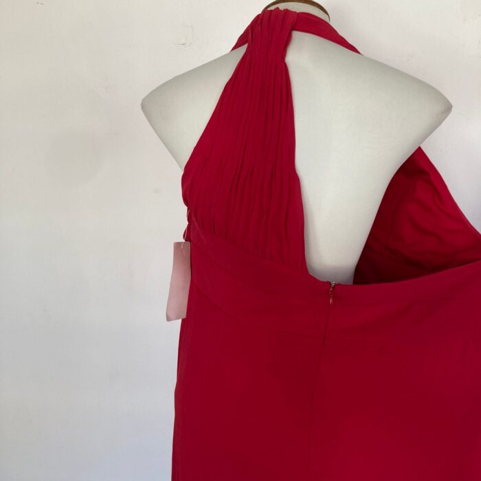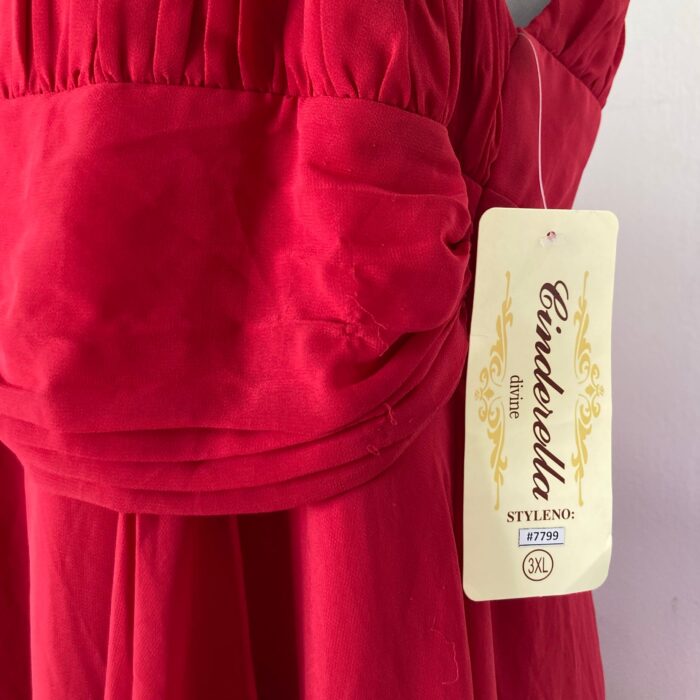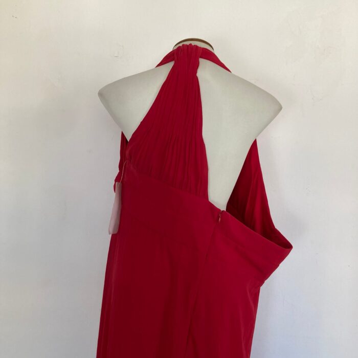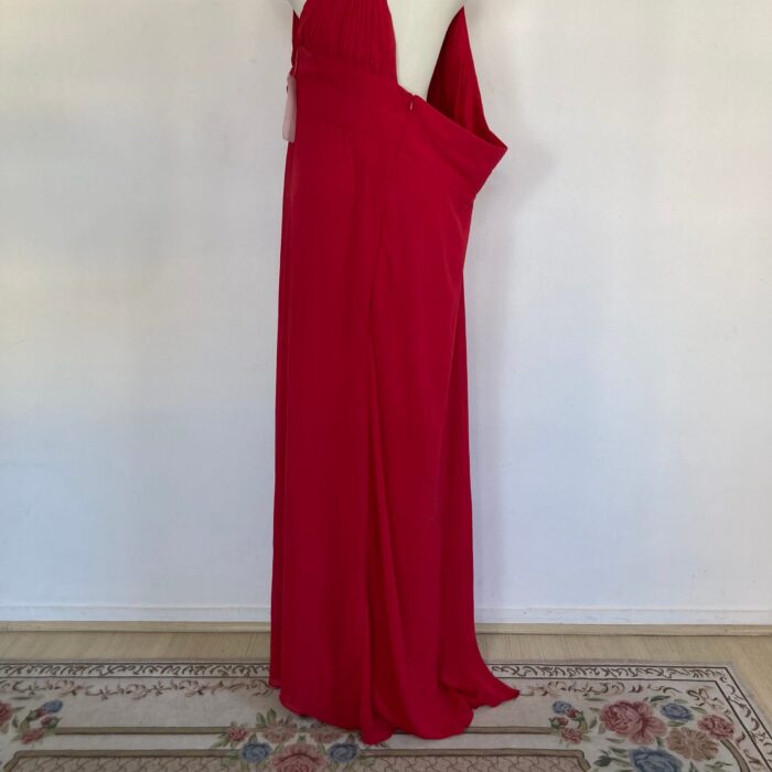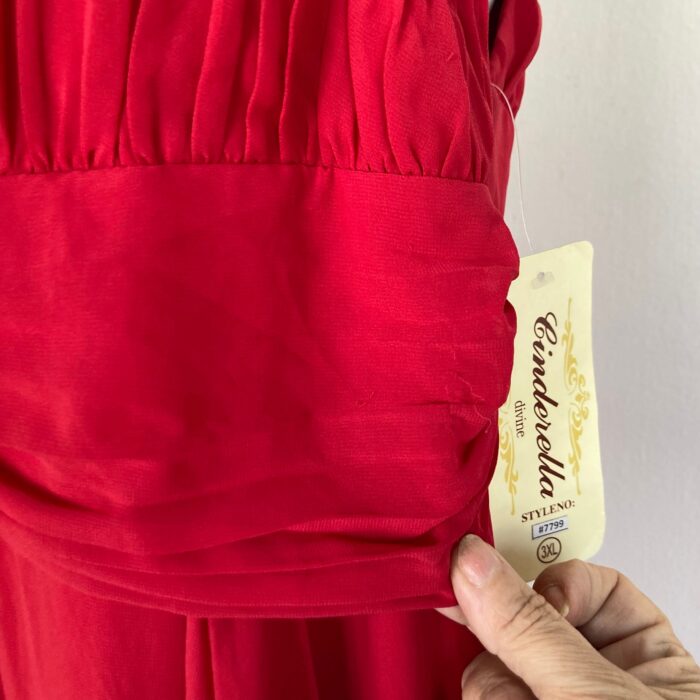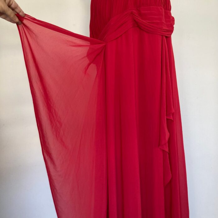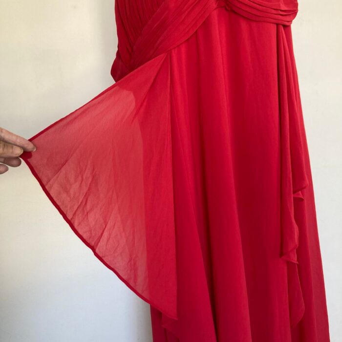 Uma boa costureira para reformar esse vestido, longo em crepe de poliéster, drapeado no busto e em algumas partes.