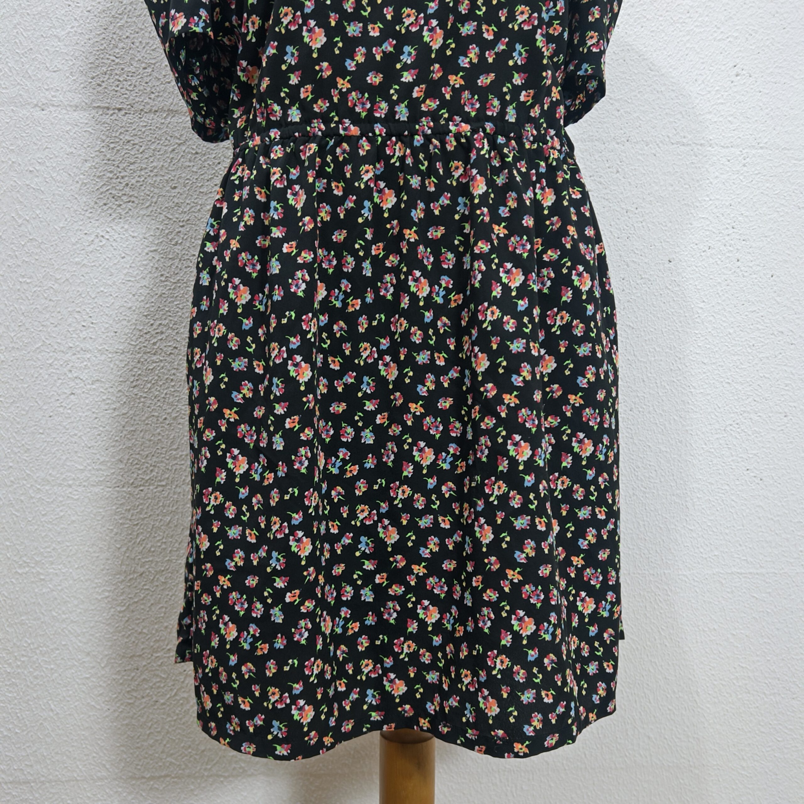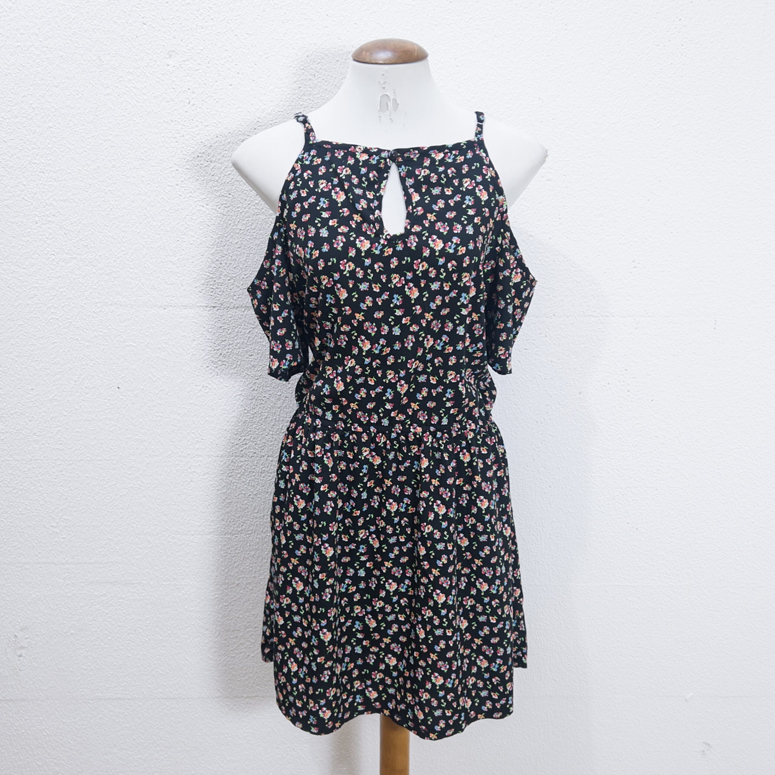 Vestido curto com estampa floral delicada, alças finas e recorte vazado no decote. Modelagem leve com cintura marcada, ideal para looks frescos e femininos. Veste M